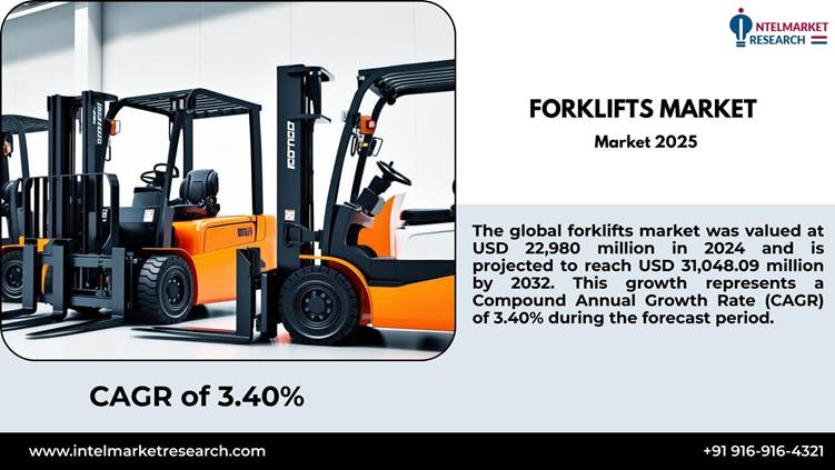 The global Forklifts Market was valued at USD 22,980 million in 2024 and is projected to reach USD 31,048.09 million by 2032. This growth represents a Compound Annual Growth Rate (CAGR) of 3.40% during the forecast period. Forklifts, also known as fork trucks or lift trucks, are powerful industrial vehicles used for the lifting, transporting, and placing of heavy loads over short distances. The..