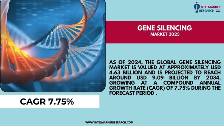 As of 2024, the global Gene Silencing Market is valued at approximately USD 4.63 billion and is projected to reach around USD 9.09 billion by 2034, growing at a Compound Annual Growth Rate (CAGR) of 7.75% during the forecast period . This growth is attributed to the increasing prevalence of genetic disorders, advancements in gene silencing technologies, and rising investments in research and dev..